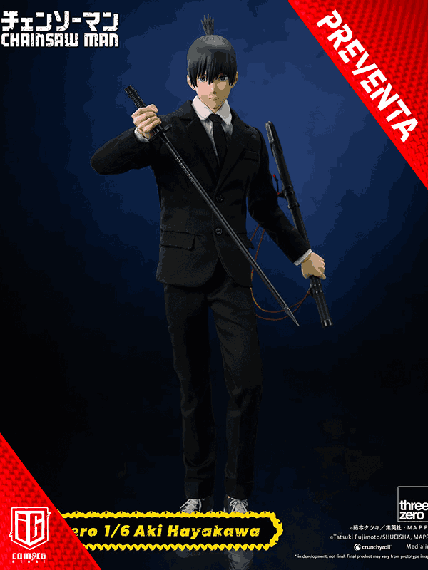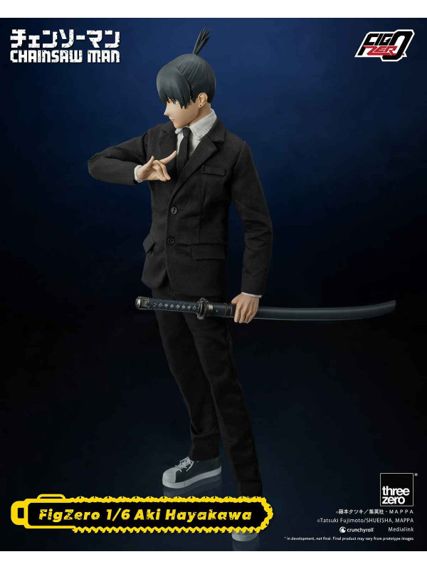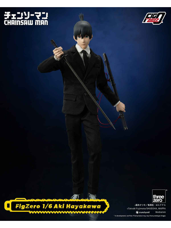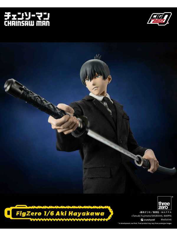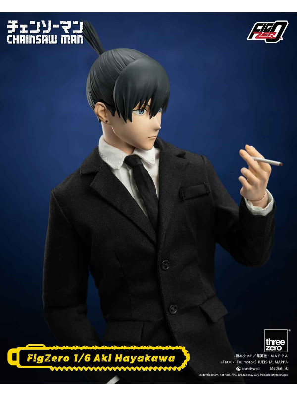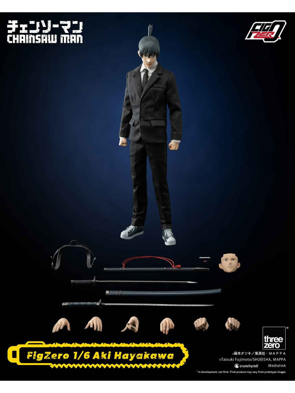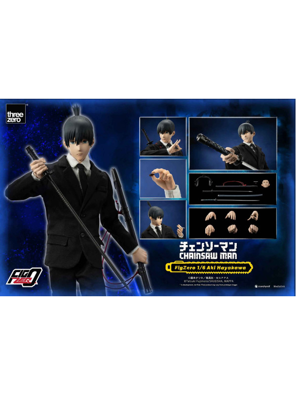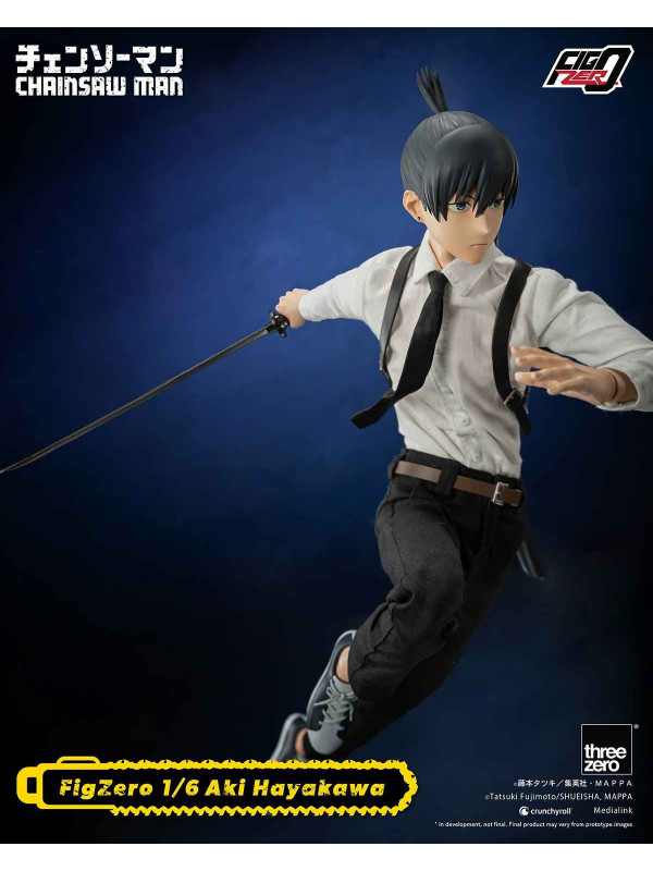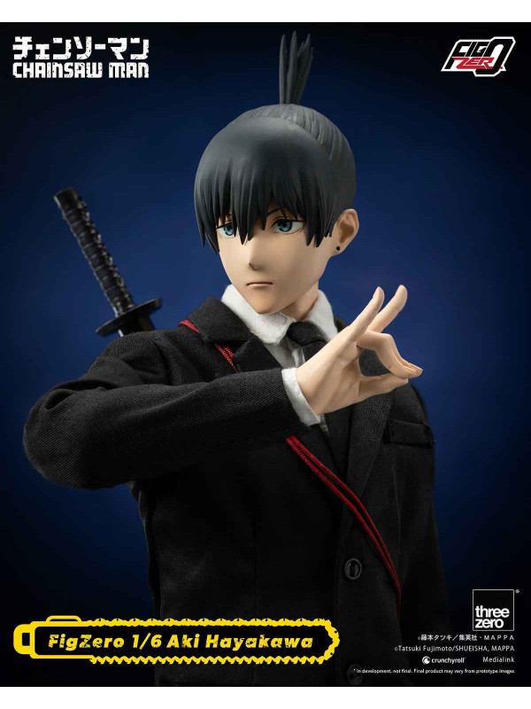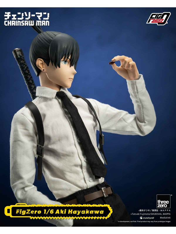 FigZero 1:6 Aki Hayakawa mide aproximadamente 30 cm de altura. Es una figura coleccionable totalmente articulada con aproximadamente 35 puntos de articulación y fabricada con materiales ABS, PVC y POM. El uniforme y la chaqueta de la Agencia de Seguridad Pública están hechos de tela, y la corbata tiene un alambre de metal interior para poder posarlo. Aki incluye un total de dos placas frontales intercambiables (cara seria y cara con el ceño fruncido) y un total de cinco tipos de manos intercambiables. Además, la figura viene con una correa para el cuerpo, katana y vaina, una segunda katana (en forma de uña) con vaina y un trozo de carne de Devil of Gun.