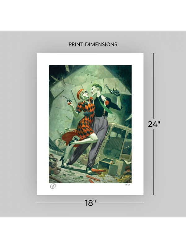 Cada impresión artística de Harley Quinn y el Guasón presenta una