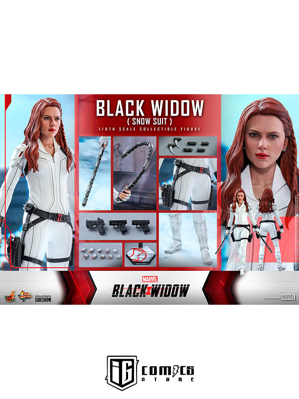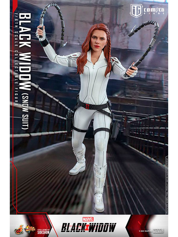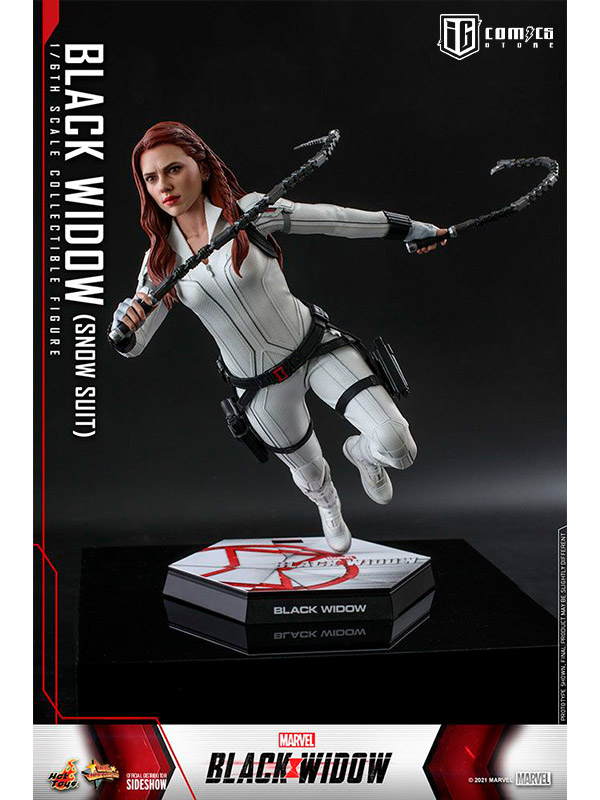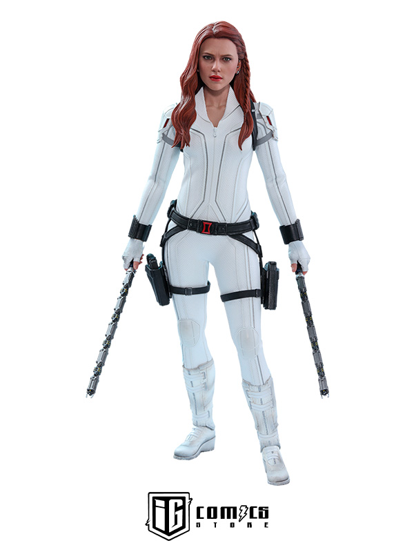 Bellamente diseñada en base a la apariencia de Scarlett Johansson en la pantalla como Natasha Romanoff / Black Widow en la producción del mismo título, la figura presenta una escultura de cabeza y cabello recientemente desarrollada con mano de obra delicada, uniforme táctico blanco finamente confeccionado, armas muy detalladas que incluyen un Un par de bastones estándar y un par de bastones articulados con 3 tipos de puntas intercambiables permiten diferentes estilos de lucha, pistolas, múltiples piezas de manos intercambiables para poses exclusivas y un soporte de figura con temática de película.