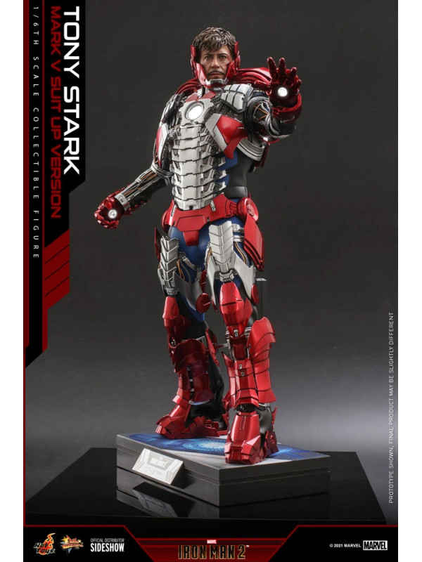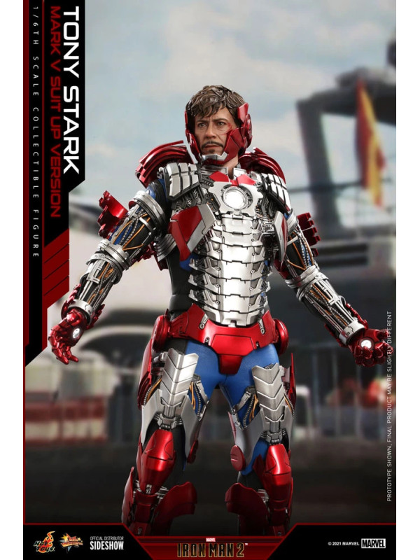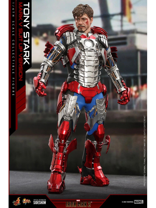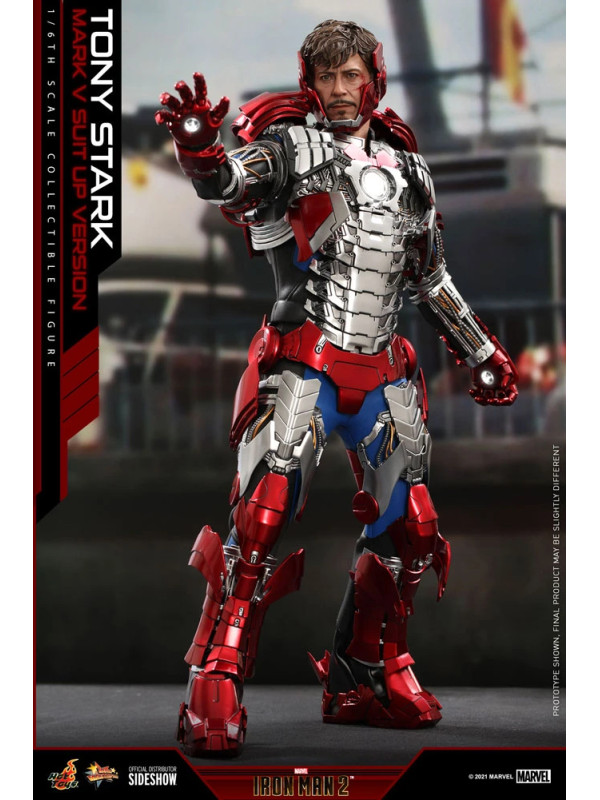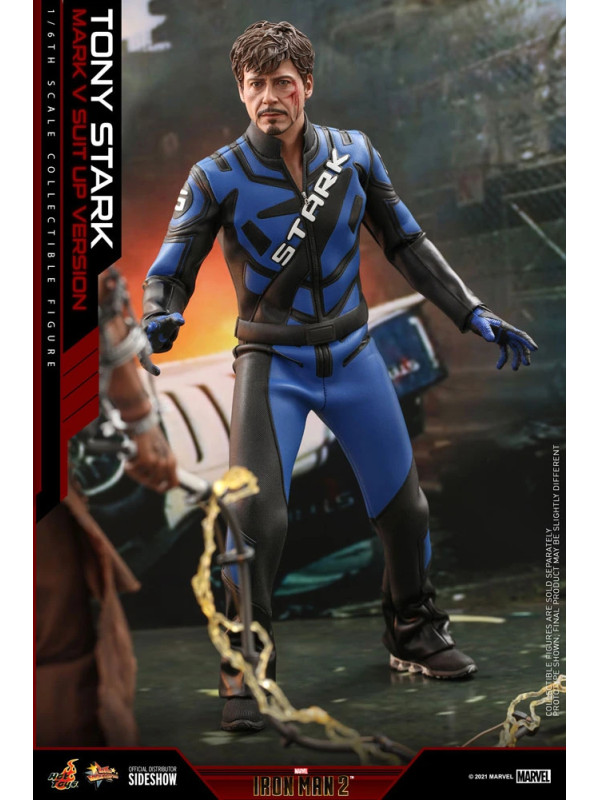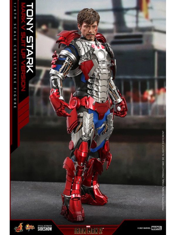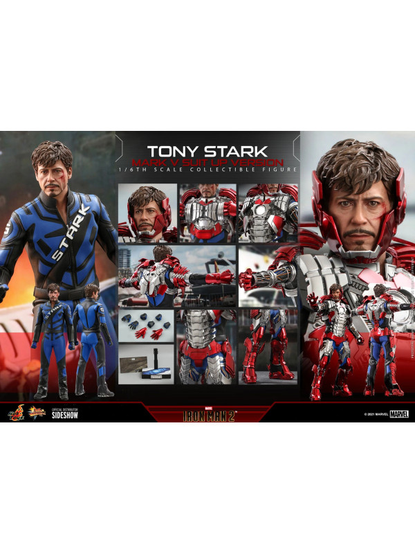 Inspirados en la escena del Mark V en la pista de carreras en Iron Man 2, Sideshow y Hot Toys presentan la figura coleccionable a escala sexta escala de Tony Stark (Mark V Suit up Version). Demuestra piezas de armadura perfectamente diseñadas con detalles mecánicos y función articulada, lo que permite a los fanáticos ensamblar la impresionante armadura en la parte superior de la figura altamente detallada.