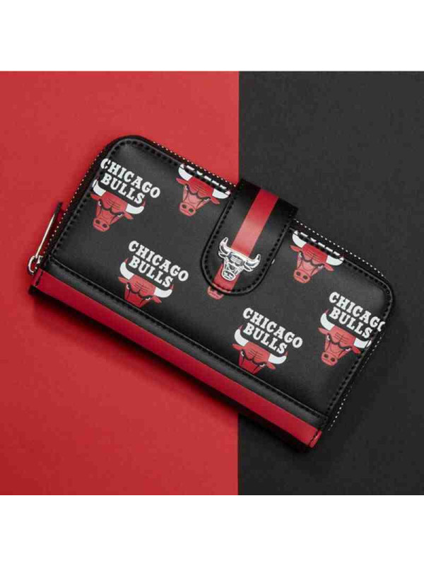Avance hacia los playoffs y muestre su espíritu de equipo con esta billetera con cremallera alrededor del logo de los Chicago Bulls de la NBA. Esta cartera con cremallera de piel vegana (poliuretano) lleva un motivo en rojo de la icónica mascota de los Chicago Bulls, con su aspecto de determinación y sus cuernos teñidos. Un fondo negro rodea el motivo impreso.