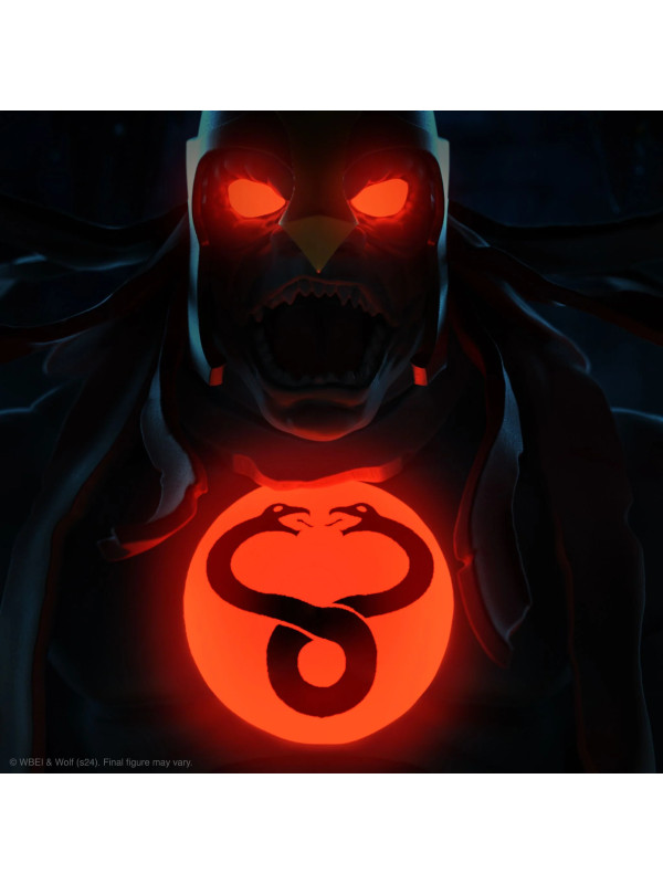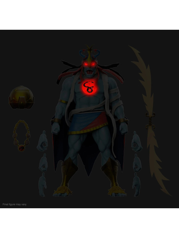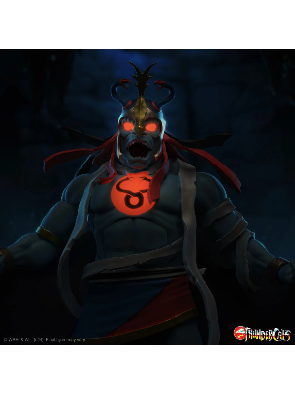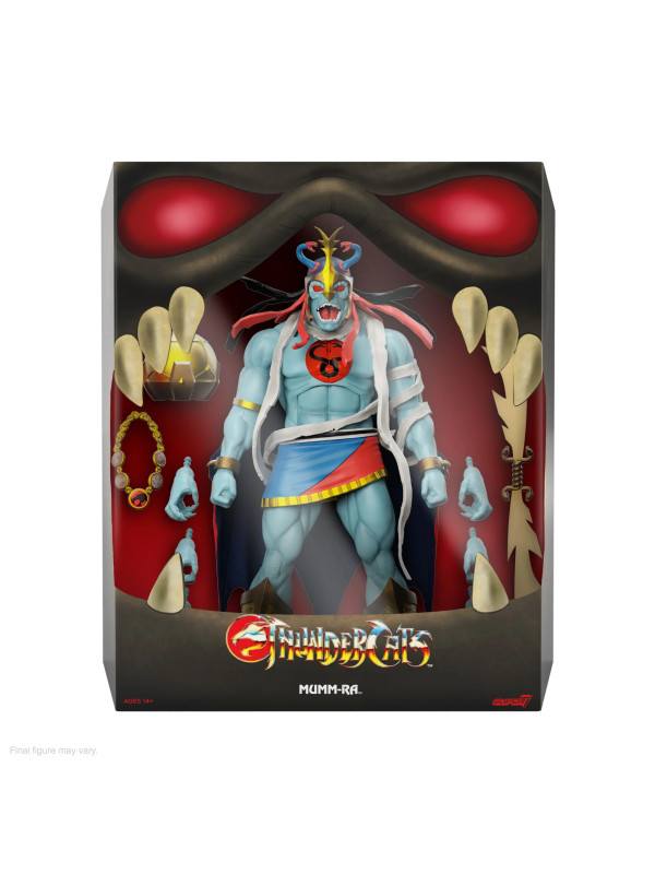 ¡El hechicero y sacerdote demonio, Mumm-Ra™ es un enemigo tan poderoso que su mera mirada puede aterrorizar incluso al héroe más decidido que se atreva a enfrentarse a él! Esta figura de Mumm-Ra™ de ThunderCats ULTIMATES! altamente articulada a escala de 7” está inspirada en la clásica serie animada de televisión y cuenta con ojos LED iluminados a batería, y detalles intrincados de pintura y escultura de primera calidad. También se incluyen múltiples manos intercambiables, así como una variedad de accesorios que incluyen una capa de tela blanda articulada, una Esfera dorada de Seti, una Cadena de lealtad y una Espada de Plun-Darr que brilla en la oscuridad. ¡Esta temible figura de Mumm-Ra™ con ojos LED iluminados hecha a medida es tan intimidante que puede hacer que los otros personajes de tu colección ThunderCats tiemblen de miedo!
