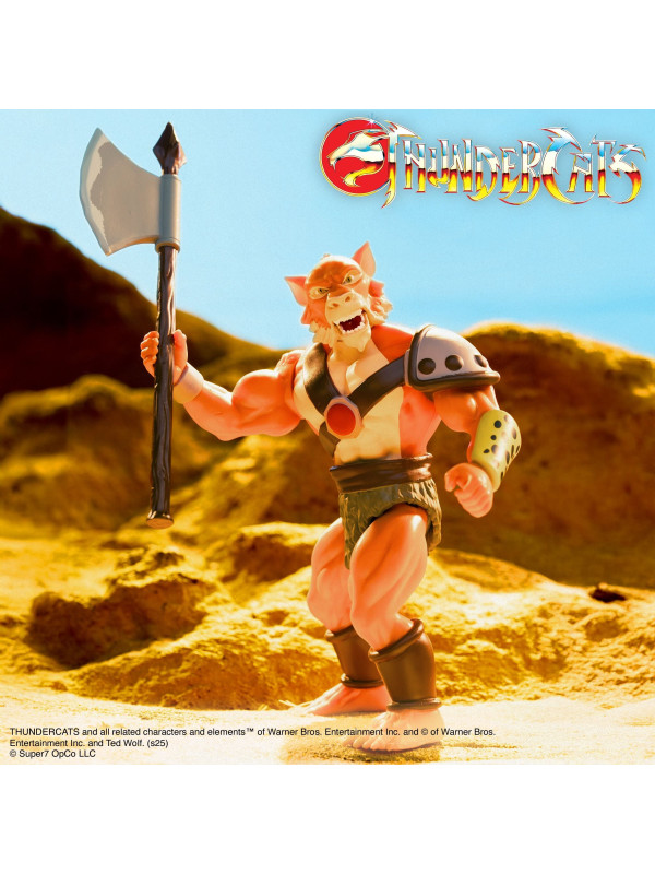Líder de los malvados Mutantes, los Jackalmen de Plun-Darr, ¡Jackalman™ no se detendrá ante nada en su búsqueda del Ojo de Thundera! La nueva figura articulada ThunderCats Vintage de Jackalman, a escala de 5.5", está inspirada en la clásica serie animada de televisión y las figuras de acción musculosas que se popularizaron en los 80, ¡y deja claro que impedirle alcanzar su objetivo no será fácil! Presentada en un cartón blíster, esta figura también incluye un hacha gigante. ¡No hay forma de saber el caos que esta figura Jackalman Vintage puede desatar cuando la añadas a tu colección!