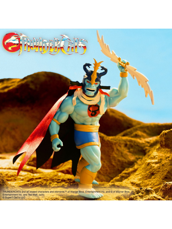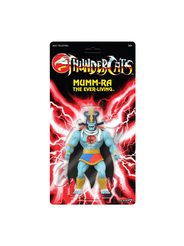 Invocando a los Antiguos Espíritus del Mal, Mumm-Ra™ puede transformarse de un estado demacrado y cadavérico a un formidable demonio de músculos ondulantes: ¡Mumm-Ra el Eterno™! La nueva figura articulada ThunderCats Vintage de Mumm-Ra el Eterno™, a escala de 5.5", está inspirada en la clásica serie animada de televisión y las figuras de acción musculosas que se popularizaron en los 80. Muestra al sacerdote diabólico en su físico transformado y musculoso. Incluye un accesorio de la Espada de Plun-Darr y una capa de tela, y viene en un dorso de cartón blíster. Con su poder físico y el poder de la hechicería a su disposición, esta figura Mumm-Ra el Eterno™ será un poderoso enemigo para los ThunderCats de tu colección.