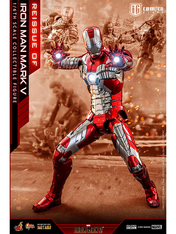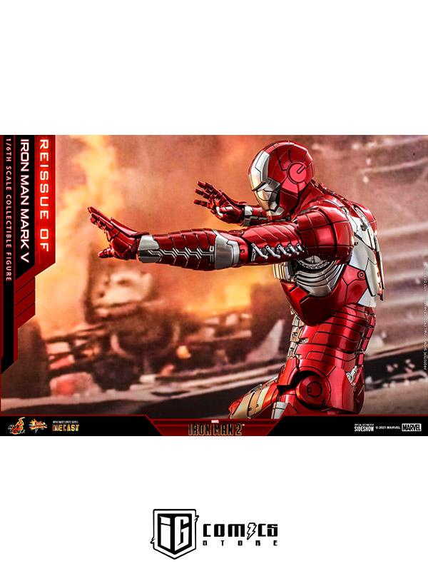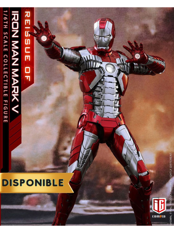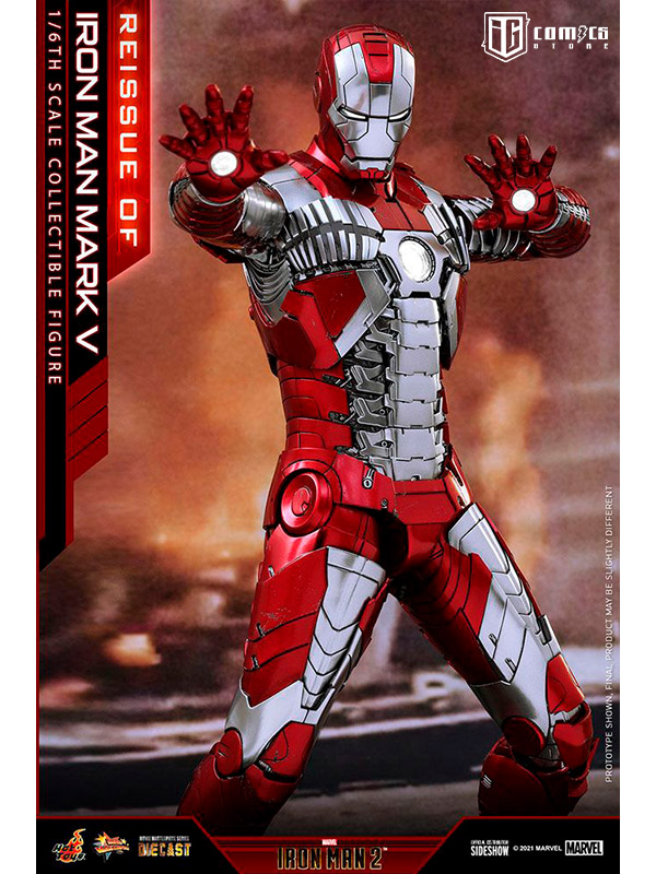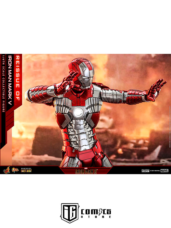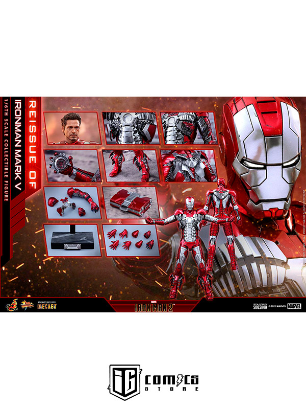 Sideshow y Hot Toys presentan la reedición de la figura coleccionable a escala 1/6 de Iron Man Mark V para los fans que se perdieron su primer lanzamiento. Inspirada en la distintiva apariencia de Iron Man Mark V en Iron Man 2 , la detallada figura "Armadura Maleta" en fundición a presión cuenta con piezas de armadura articuladas y una estructura altamente articulada para recrear las escenas de la película.