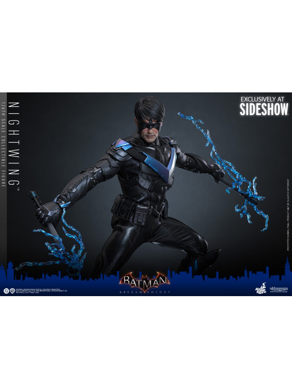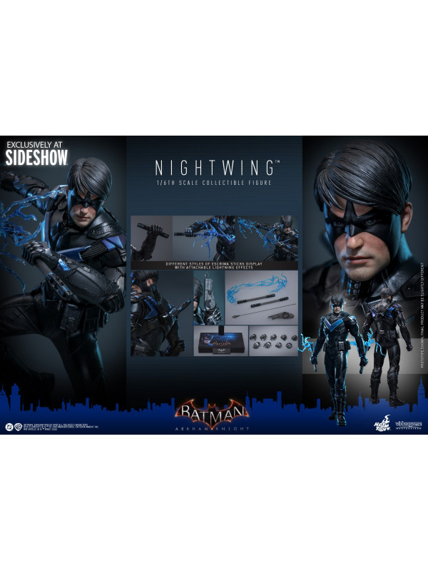 Dick Grayson, el más joven de la familia de acróbatas "Flying Graysons", presenció el trágico asesinato de sus padres, orquestado por un jefe de la mafia. El joven huérfano fue adoptado por Bruce Wayne y comenzó su carrera en la lucha contra el crimen como Robin, el compañero de Batman. Decidido a demostrar su valía, Dick finalmente se lanzó como un nuevo héroe llamado Nightwing. En Arkham Knight, tras consolidarse como Nightwing, opera de forma independiente, a veces ayudando a Batman. Los jugadores pueden usar sus habilidades de combate acrobático y sus dispositivos únicos en los escenarios de "Juego Dual".