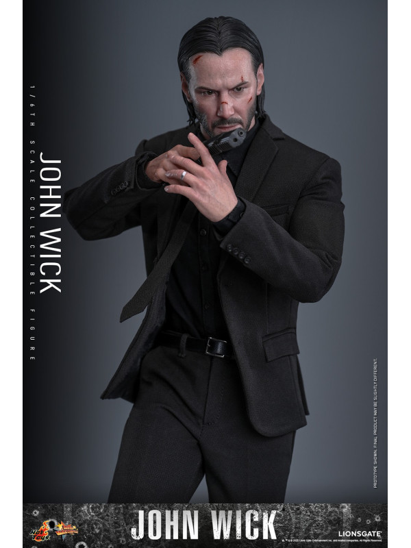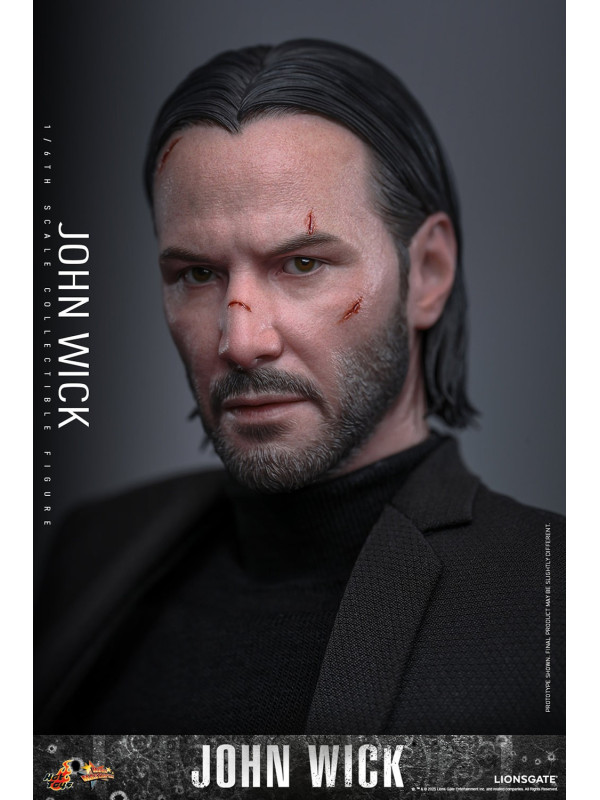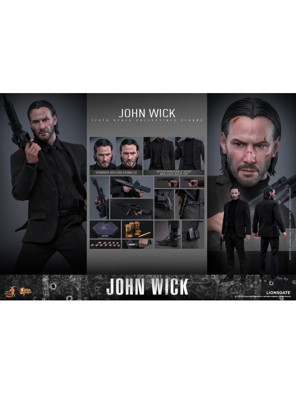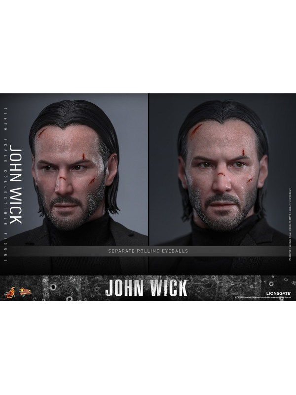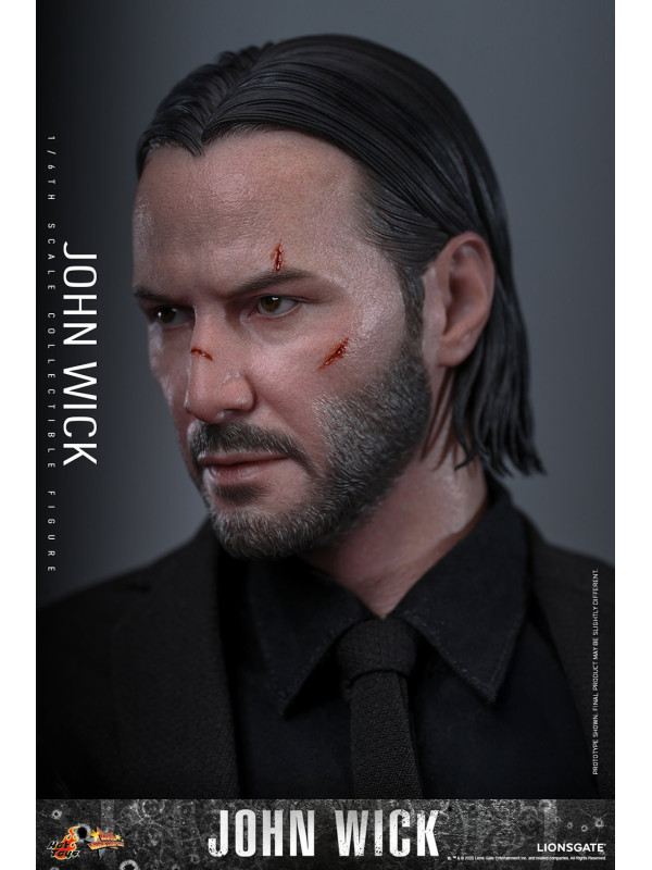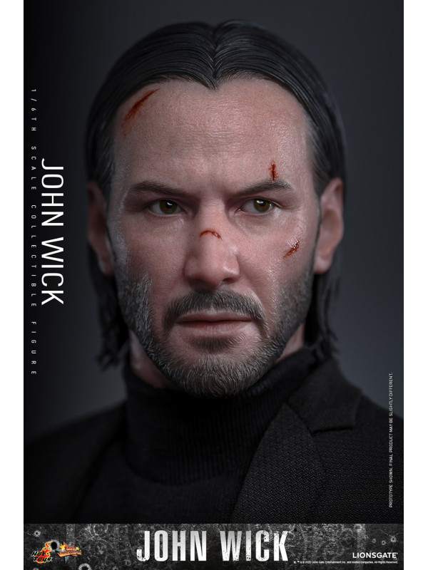 Sideshow y Hot Toys se enorgullecen en presentar la figura coleccionable a escala 1/6 de John Wick , meticulosamente elaborada del legendario sicario. La figura de acción de John Wick presenta una cabeza esculpida de nuevo diseño con aplicaciones de pintura dañadas por la batalla y ojos giratorios separados, complementados con un peinado hacia atrás meticulosamente esculpido. Con doce manos intercambiables, desde puños y gestos de autoridad hasta empuñar traje y pistola, esta figura permite acción dinámica y poses expresivas.
