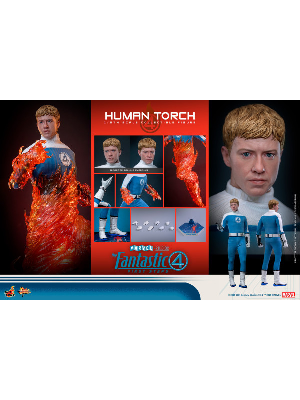 Sideshow y Hot Toys se enorgullecen en presentar la figura coleccionable a escala 1/6 de la Antorcha Humana . Esta figura de acción de Marvel presenta una cabeza esculpida de nuevo desarrollo con ojos giratorios separados y cabello rubio meticulosamente esculpido. Viste el uniforme azul y blanco de los Cuatro Fantásticos con un cinturón y botas largas a juego. La figura ofrece ocho manos enguantadas intercambiables y dos manos con efecto de llama para recrear su capacidad de pirogénesis. Los accesorios incluyen un impresionante efecto de llama voladora translúcida de 32 cm de alto en degradado naranja y rojo, intercambiable con la parte inferior del cuerpo de la figura para recrear los momentos en que Johnny usa sus poderes de llama para volar. Presentada en una base de figura especialmente diseñada, ¡está listo para la acción!