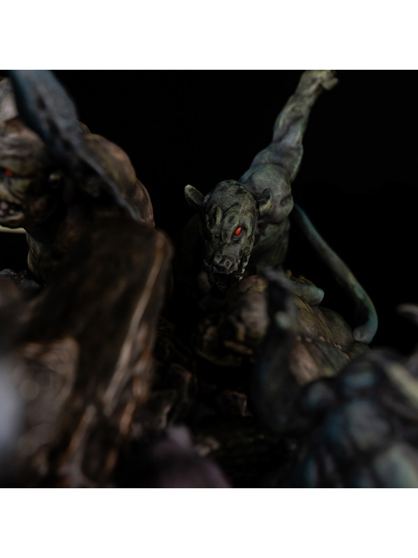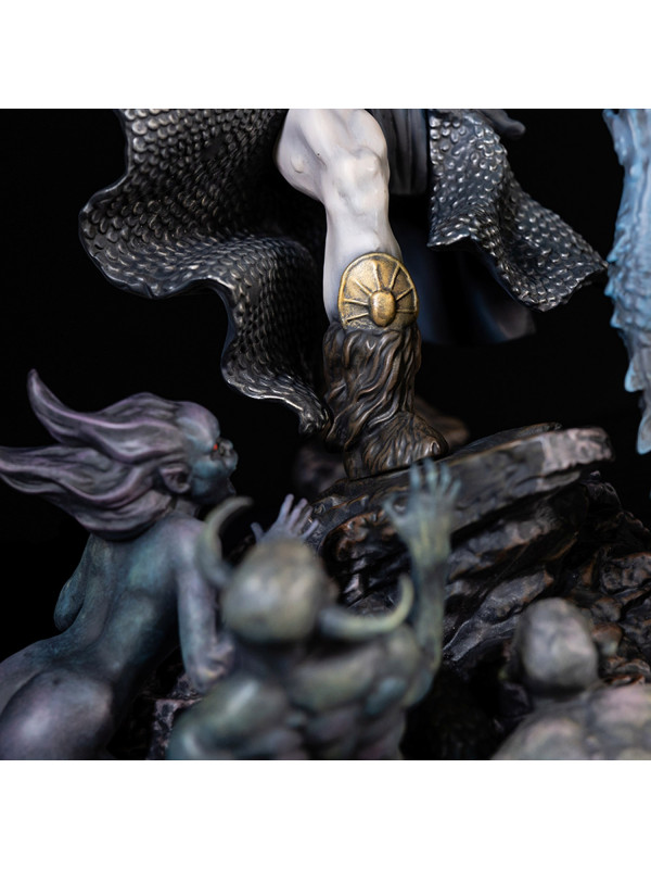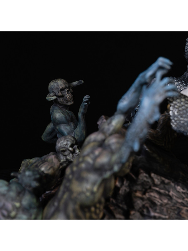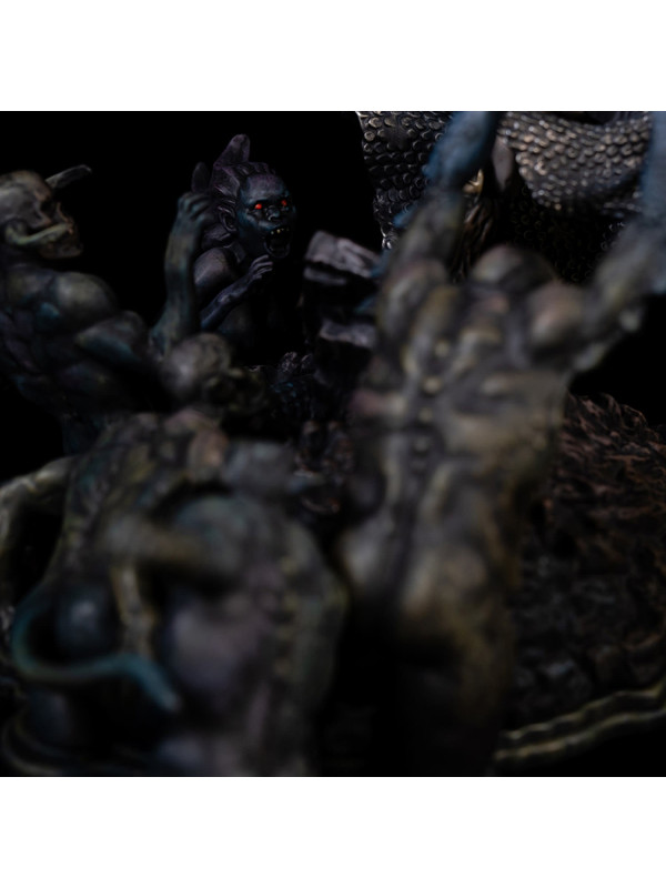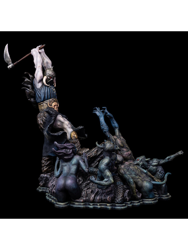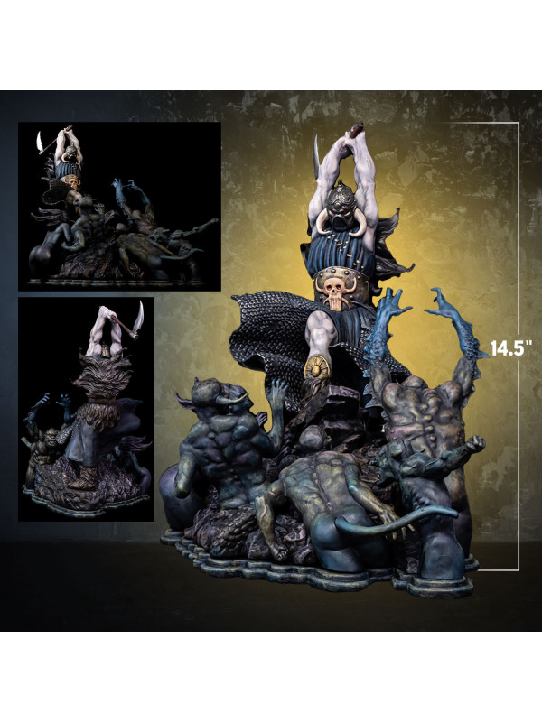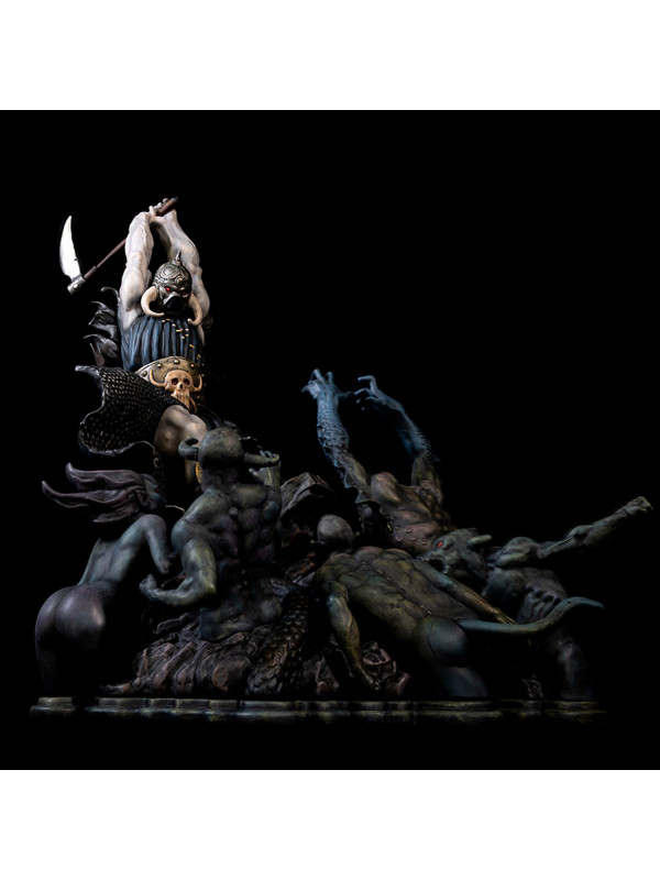 Presentamos Death Dealer II de Frank Frazetta , el primer lanzamiento de la serie de estatuas a escala 1:6 de ICON Collectibles™, limitada a solo 1000 piezas. Esculpida por los artistas de renombre mundial The Shiflett Brothers, esta estatua reproduce fielmente el movimiento de la obra original: la imponente figura bajo el yelmo con cuernos, los demonios del inframundo a sus pies, y la atmósfera de terror que la hizo inmortal.