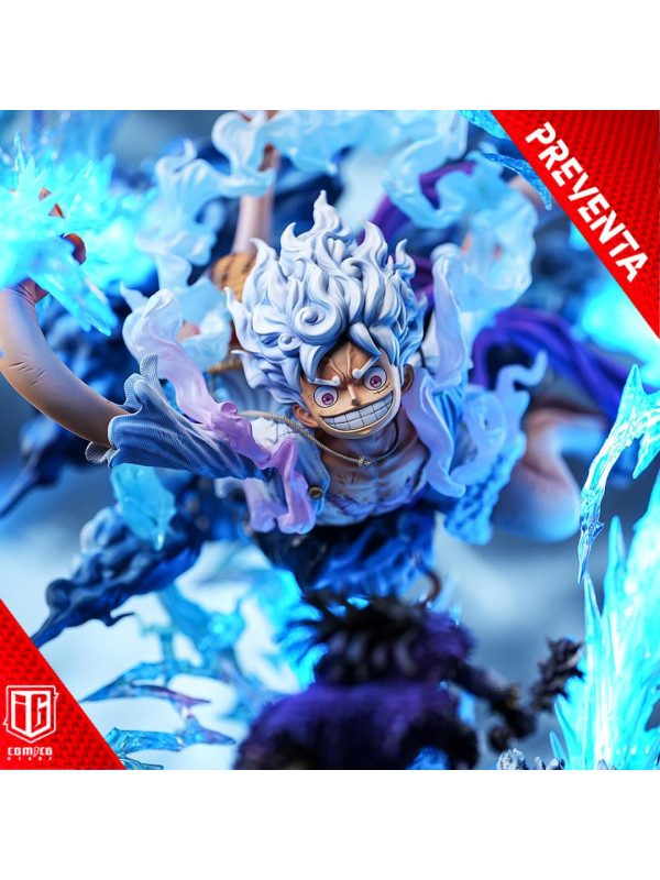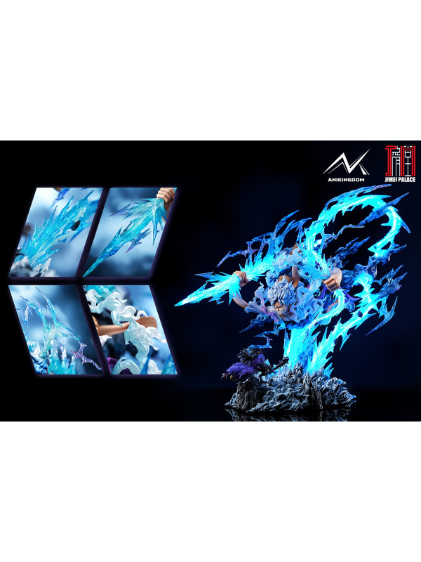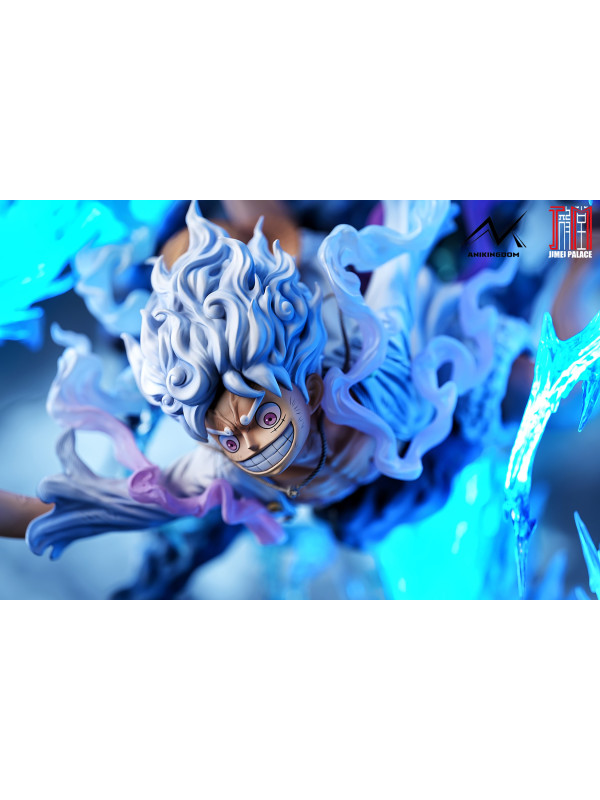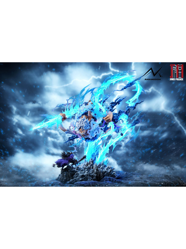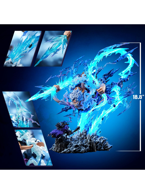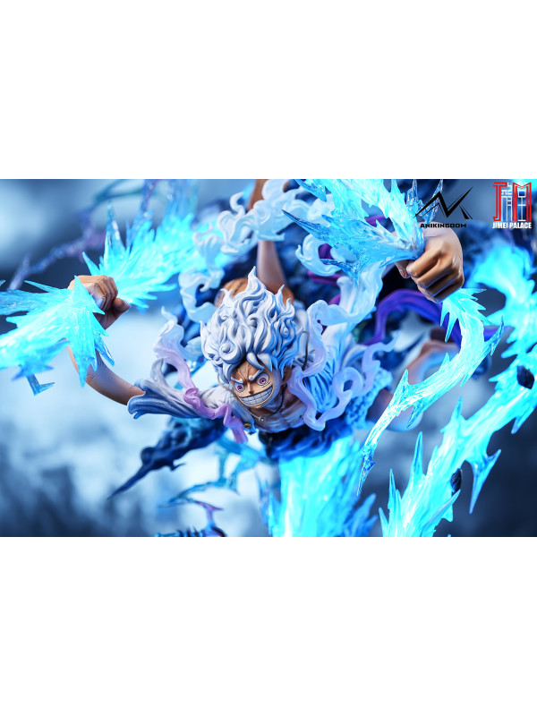 La primera estatua coleccionable de Luffy Gear 5 del mundo (con efectos de luz y sonido) en colaboración con Anikingdom. Esta dinámica estatua de 45 cm evoca el despertar de la Gomu Gomu no Mi de Luffy. Gear 5 otorga al cuerpo de goma de Luffy mayor fuerza y libertad, permitiéndole luchar como le plazca. Por esta razón, se dice que se convirtió en el "Guerrero de la Liberación" durante su batalla final contra Kaidou en Onigashima.
