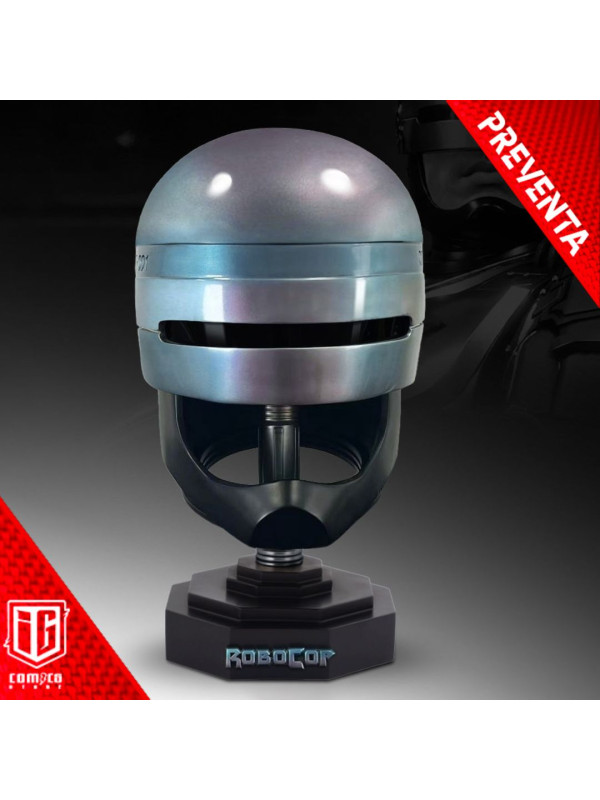 Este casco a tamaño real ha sido recreado meticulosamente, capturando la impactante presencia del legendario agente de la ley cibernético de Paul Verhoeven.