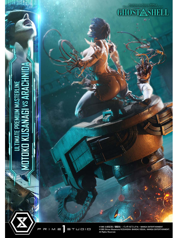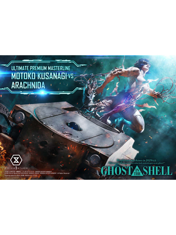 Estrenada en cines en 1995, "GHOST IN THE SHELL" sigue inspirando la cultura tecnológica en todo el mundo. De la mente visionaria del director Mamoru Oshii, el icónico enfrentamiento entre Motoko Kusanagi y la Arachnida cobra vida en la serie Ultimate Premium Masterline.