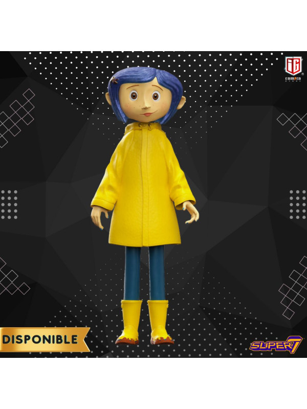 Inquieta y aburrida, Coraline lucha por adaptarse a su nueva vida en un nuevo pueblo. Pero cuando encuentra una muñeca de trapo que se parece misteriosamente a ella y la lleva a descubrir una puerta oculta, ¡sus mundanos desafíos del mundo real se convierten en el menor de sus problemas! Esta figura articulada de vinilo SuperSize de Coraline de 40 cm presenta un detallado diseño pintado y esculpido, y la representa con su impermeable, incluyendo botas amarillas con detalles de barro y un impermeable amarillo de tela. Para cualquier fan de la película de animación stop-motion de LAIKA, nominada al Óscar, ¡la figura de vinilo SuperSize de Coraline es una fantástica adición a su colección!