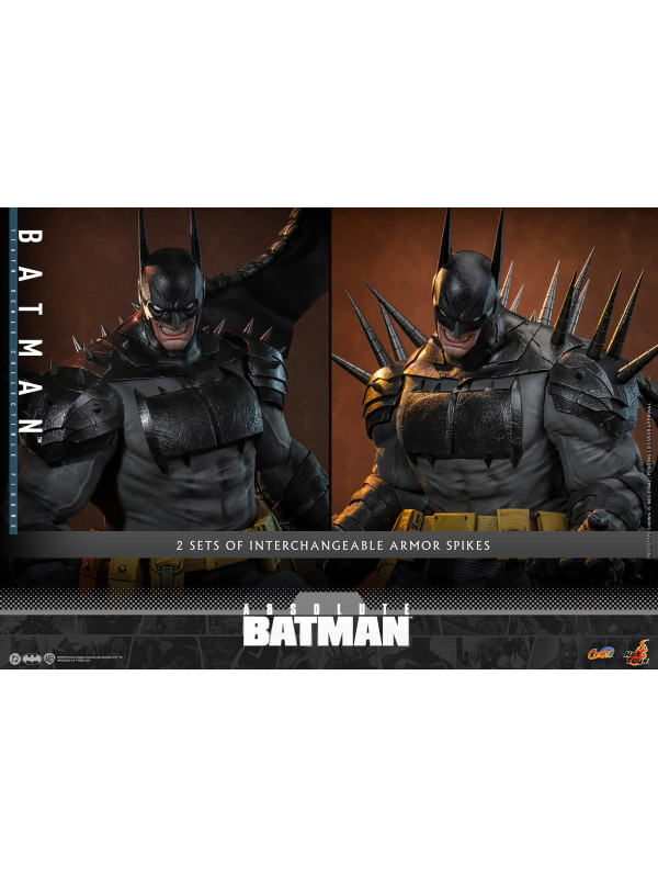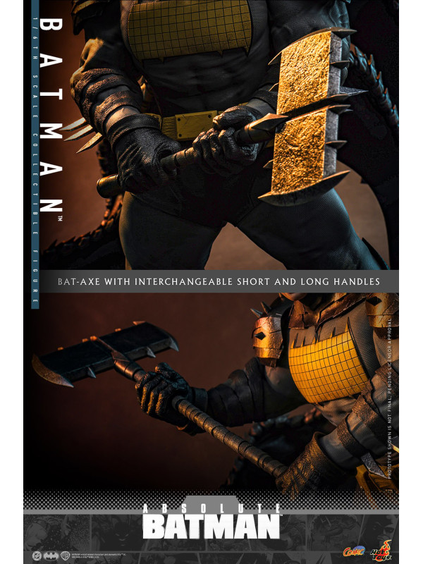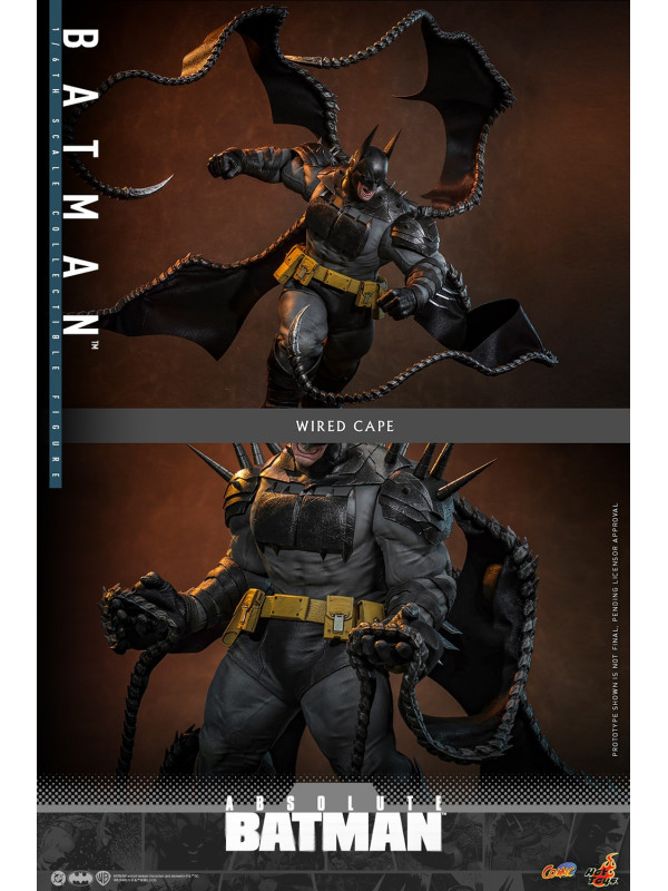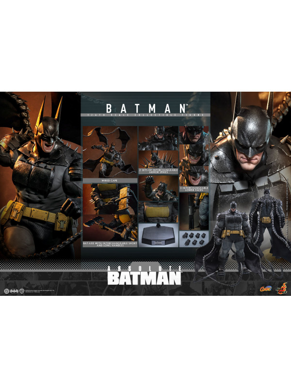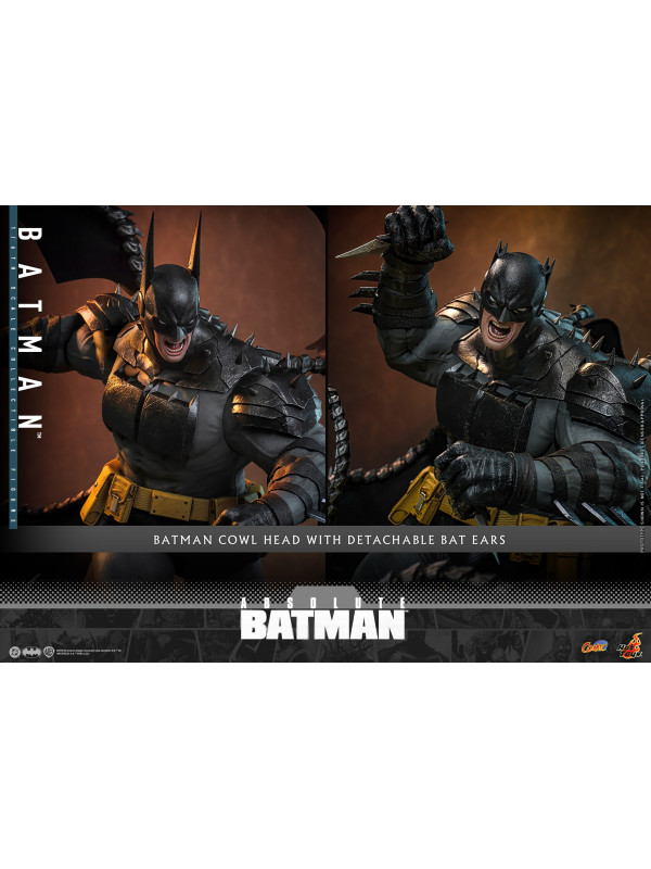 Sideshow y Hot Toys se complacen en presentar la figura coleccionable de Batman™ a escala 1/6 , inspirada en la serie de cómics Absolute Batman. Con una altura aproximada de 37 cm, esta figura a escala 1/6 da vida al imponente Batman de los cómics. Captura de forma impactante su imponente físico, con un cuerpo musculoso fabricado con vinilo suave que permite un diseño de articulaciones suaves y sin costuras. La figura de acción de Batman cuenta con una cabeza con capucha de Batman, orejas de murciélago desmontables y tres caras inferiores intercambiables, lo que permite a los coleccionistas usar sus orejas de murciélago como cuchillos y transformar su expresión de sombría a amenazante.