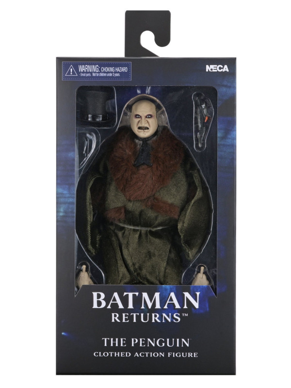 Rindiendo homenaje a las líneas de juguetes vintage, la figura del Pingüino está totalmente articulada y luce ropa de tela a medida, incluyendo un abrigo articulado con alambre. Los accesorios incluyen sombrero de copa, monóculo, bocadillo de pescado, manos enguantadas intercambiables y más. Esta figura a escala de 20 cm se presenta en una caja con ventana y funda.