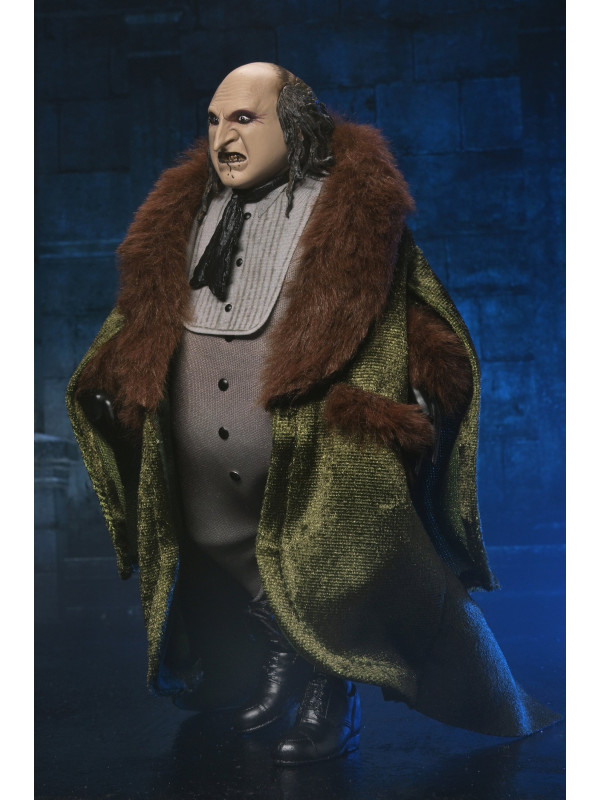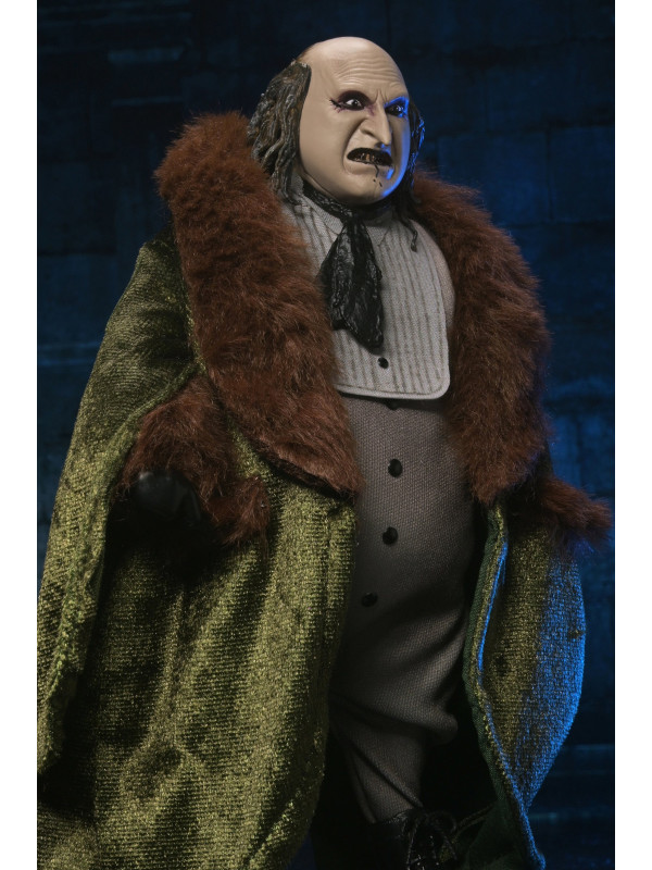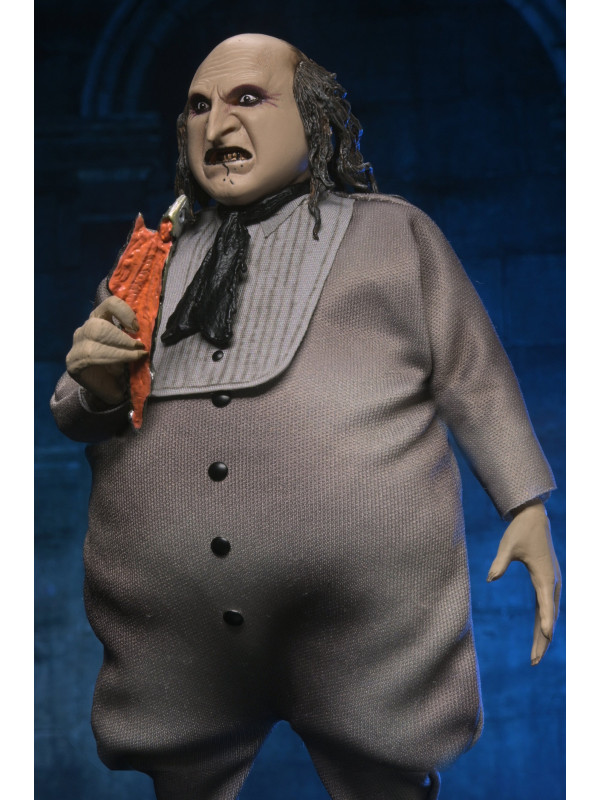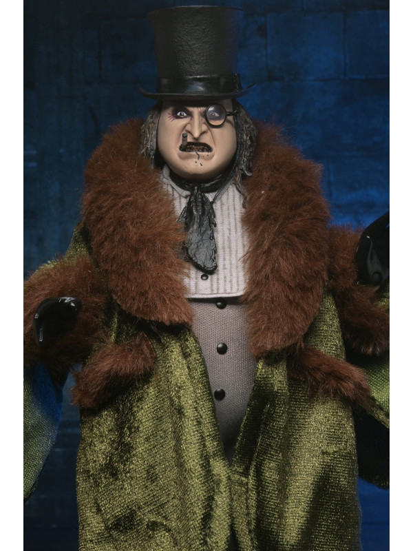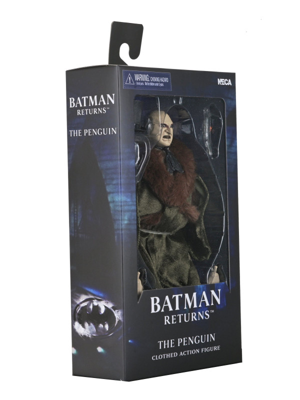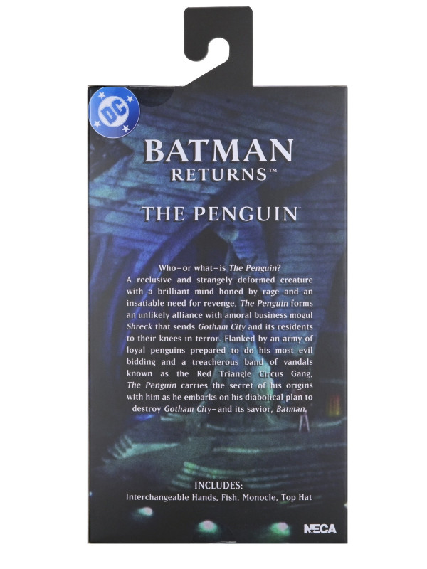 NECA presenta esta figura de acción vestida de El Pingüino de la obra maestra de Tim Burton de 1992 , Batman Returns , con Danny DeVito en una actuación inolvidable como el icónico villano. Abandonado de niño por sus padres, ahora es un hombre solitario y deforme, con una mente retorcida agudizada por la rabia y una insaciable necesidad de venganza, escondido en los túneles y alcantarillas debajo de Ciudad Gótica. El Pingüino encontró un hogar y base de operaciones en el Pabellón Arctic World en el abandonado Viejo Zoológico de Ciudad Gótica. El Pingüino y la pandilla del Circo del Triángulo Rojo forman una alianza improbable con el magnate empresarial amoral Max Shreck que sume a Ciudad Gótica y a sus residentes en un frenesí de terror.