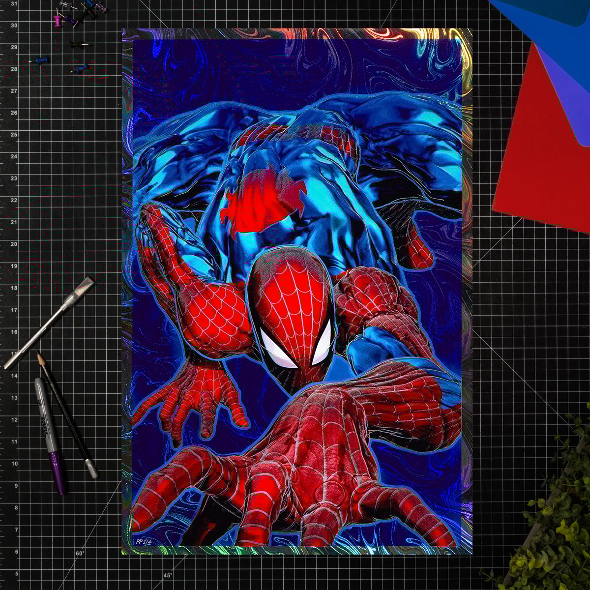 Creada originalmente como portada variante para Spider-Man '94 #1 (2025), escrita por JM DeMatteis para Marvel Comics, cada lámina artística de Spider-Man '94, en la edición limitada de 150 piezas, cuenta con el Sello de Autenticidad de Sideshow en relieve. Impresa en papel holográfico de lava arcoíris, la litografía tiene un aspecto reflectante único que realza aún más los impactantes detalles del traje de Spidey. Añade esta sensacional lámina artística de Spider-Man a tu colección sin marco o en una exposición con marco personalizado para un objeto de colección que llame la atención (y ojalá no a los ladrones) ¡como las moscas!