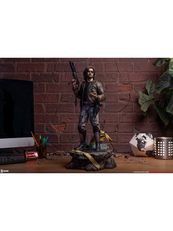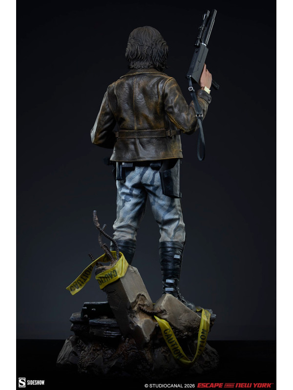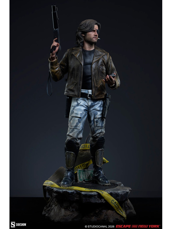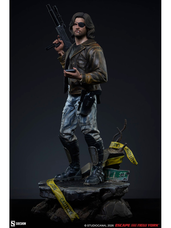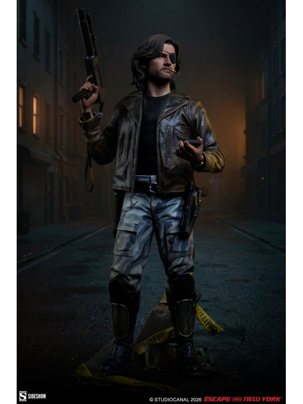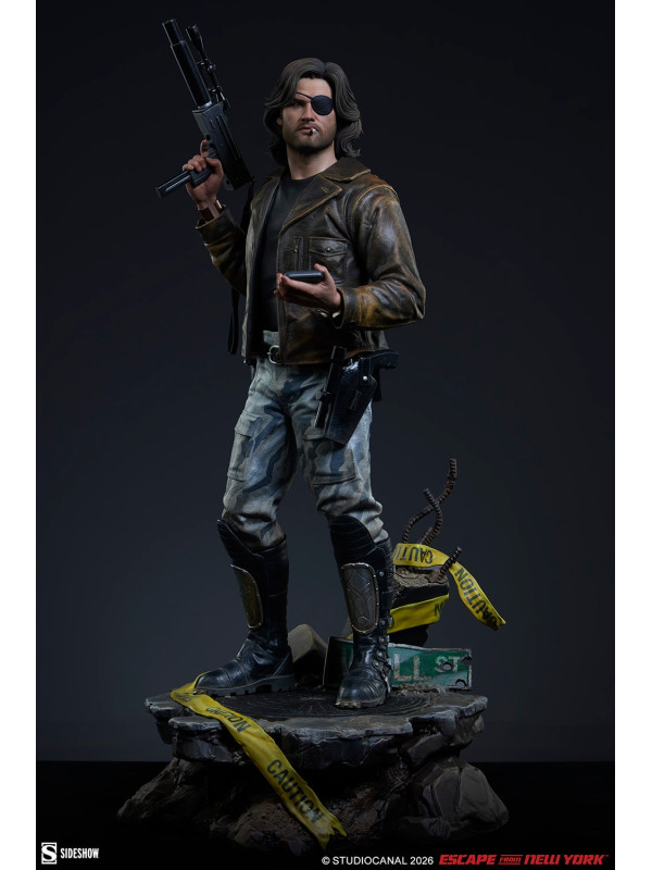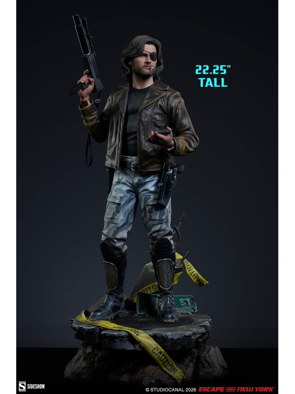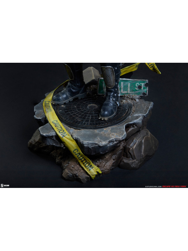 Las reglas son simples: una vez dentro, no hay salida. La figura Snake Plissken Premium Format™ transporta a los coleccionistas directamente a la prisión de máxima seguridad antes conocida como Manhattan. Esta estatua mide 56,5 cm de alto x 27,4 cm de ancho x 28,6 cm de profundidad y representa al exmiembro de las Fuerzas Especiales en su misión de rescatar al Presidente. Se encuentra rodeado por los restos distópicos de la sociedad, con el famoso letrero de Wall Street perdido entre los escombros, las barras de refuerzo y la cinta de precaución desgarrada. Una tapa de alcantarilla bajo las botas de Snake es lo único que lo separa de los asesinos Crazies.