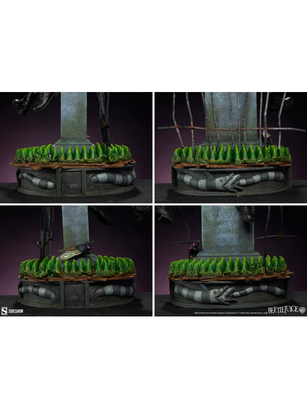 La base de esta impactante estatua presenta una recreación detallada del modelo "nice f&%king" de Adam Maitland , que reproduce fielmente el aspecto de la hierba de espuma y las capas de cartón. Pero, como en cualquier tumba, aún más macabro se esconde bajo la superficie. Un gusano de arena rodea la escena junto con dos cameos de las peligrosas esculturas de Delia Deetz.